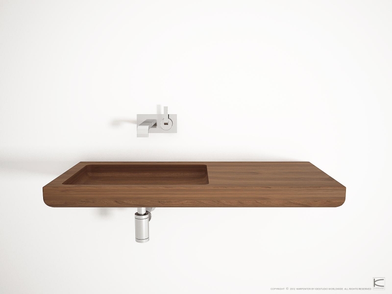 Ella’s single washbasin is modern in its soft lines and curves that create a weightless elegance. The gently rounded corners give a softer expression. The piece is available in golden reclaimed teakwood.