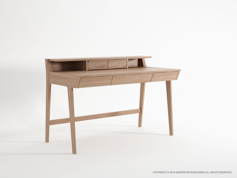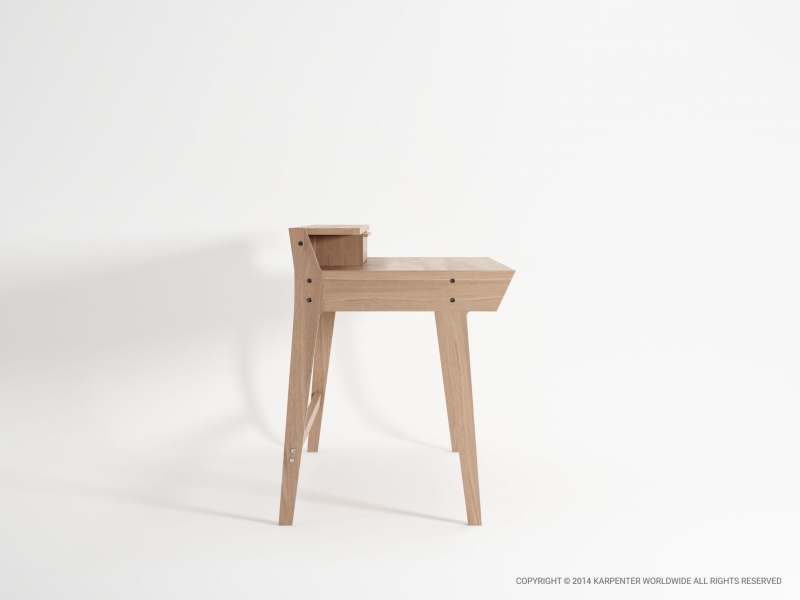 The KARPENTER writing desk draws on inspiration from the clean lines and soft angles of Scandinavian furniture of the 1950s and 1960s and the inlaid desk; popular in the baroque era that combines the office desk with storage space. The multiple drawers are perfect for the writers’ tools and soon to be published projects. All you need is inspiration and a typewriter.