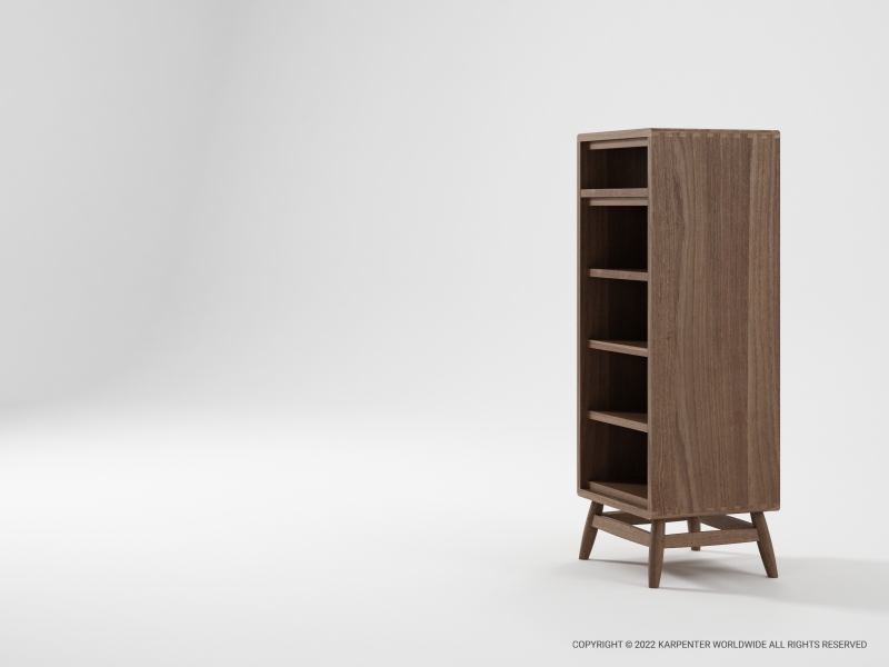 The characteristic slant angles of the Twist collection make this tall chest a monument of retro modern designs.