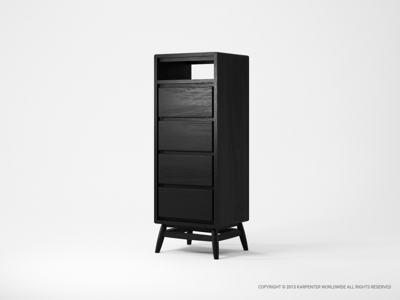The characteristic slant angles of the Twist collection make this tall chest a monument of retro modern designs.