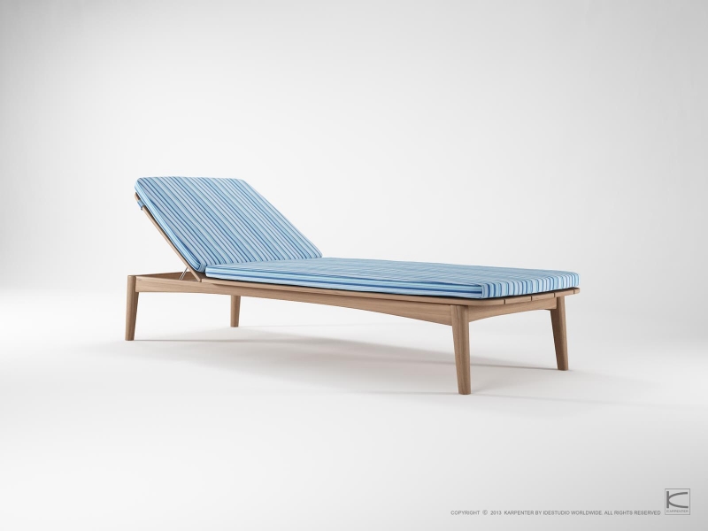 A beautiful, sleek sun-bed made from 100% FSC certified teakwood is perfect for relaxation and fun. A soft cushion, available in different colors, adds great comfort.