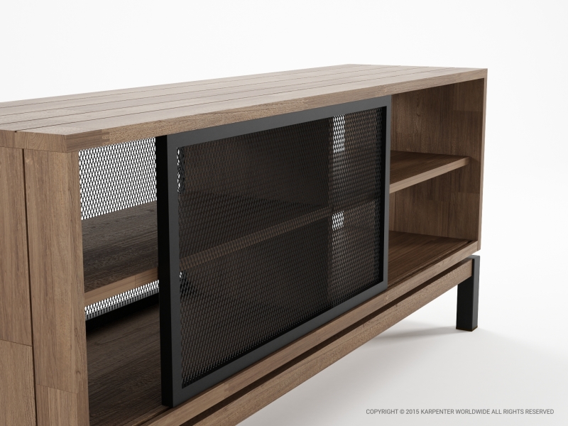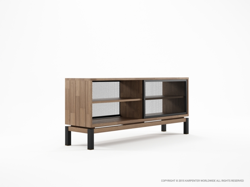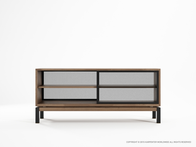 The Color BeBop Sideboard's metal mesh sliding doors and colored iron legs stand out as subtle but powerful design statements. The identical fronts and backs give the piece the flexibility needed in a modern home. The vintage pastel colors stand in soft contrast to the wood, and comes in Green gray, Rust, and Deep Black.