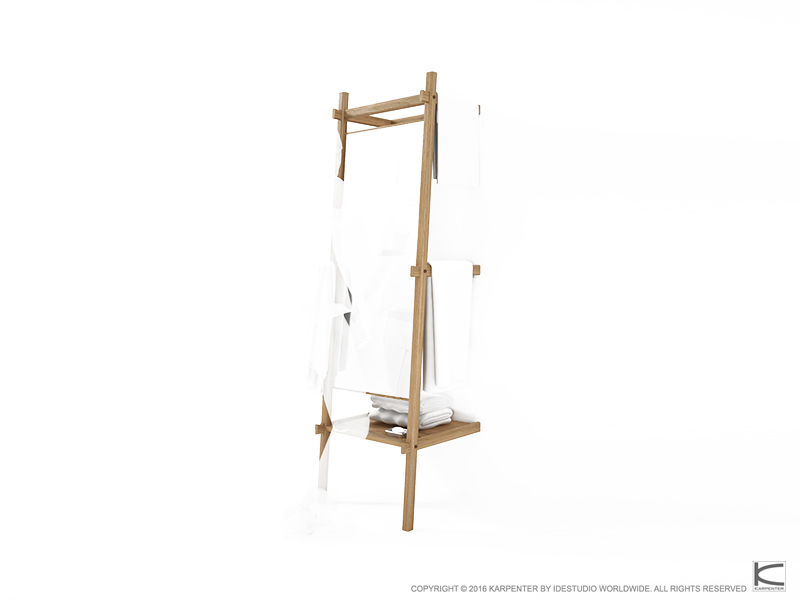 The Simplycity towel hanger and standing mirror also have a unique quality as a room divider. In combination with lighting, the angles will create fascinating shadow plays.
