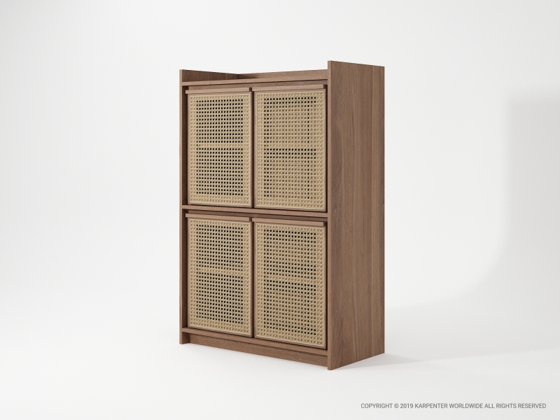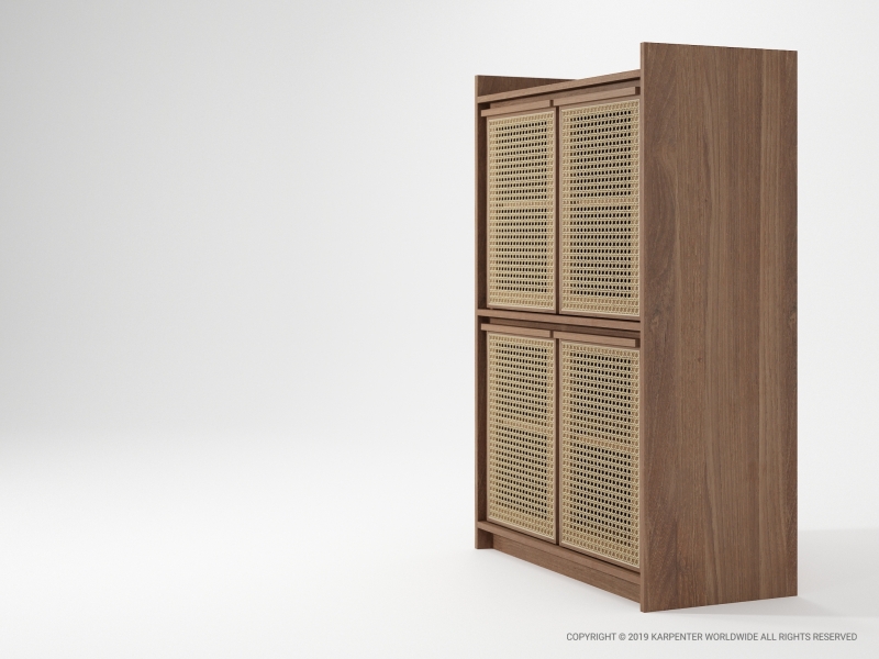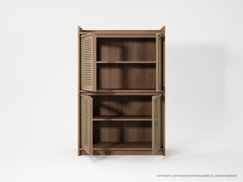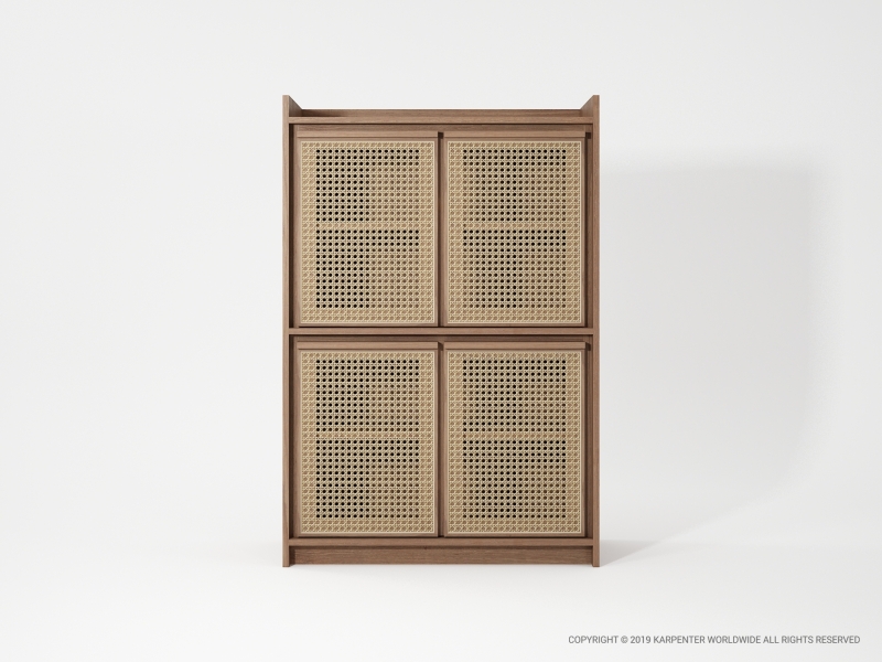 Effortlessly beautiful. This elegant cupboard is truly agreeable. With four doors and each of it has functional shelves inside. Place it in one corner of your room and you will need nothing else.